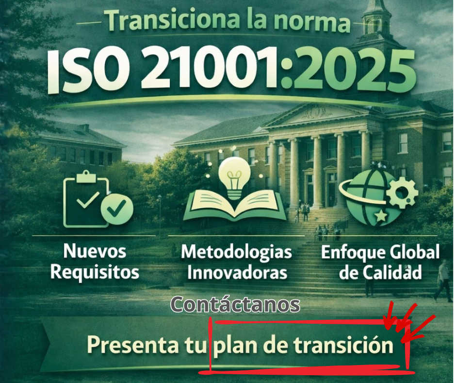 Les informamos que en julio de 2025 fue publicada la nueva versión de la norma ISO 21001:2025. La cual reemplaza la versión 2018 y establece los requisitos actualizados para sistemas de gestión de organizaciones educativas. Se establece un período de transición de dos (2) años, durante los cuales los certificados emitidos bajo la versión anterior […]
